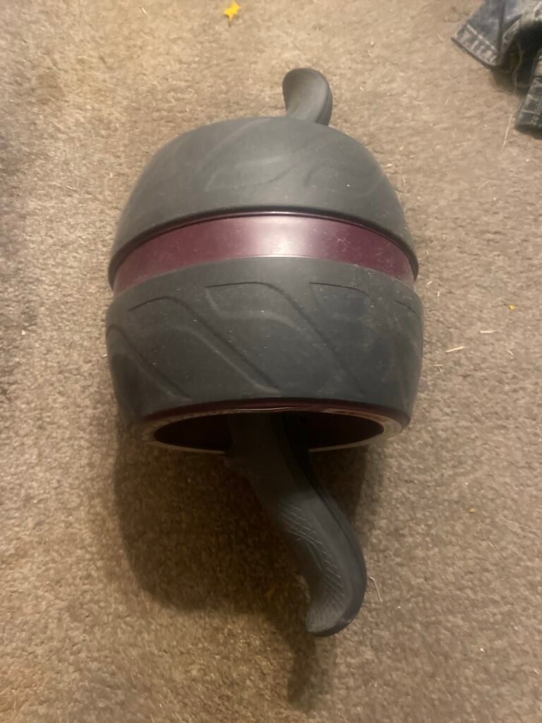 You grab onto the two handles and I roll the device in front of me while on my knees. Less strain than doing situps, which screw up my back.