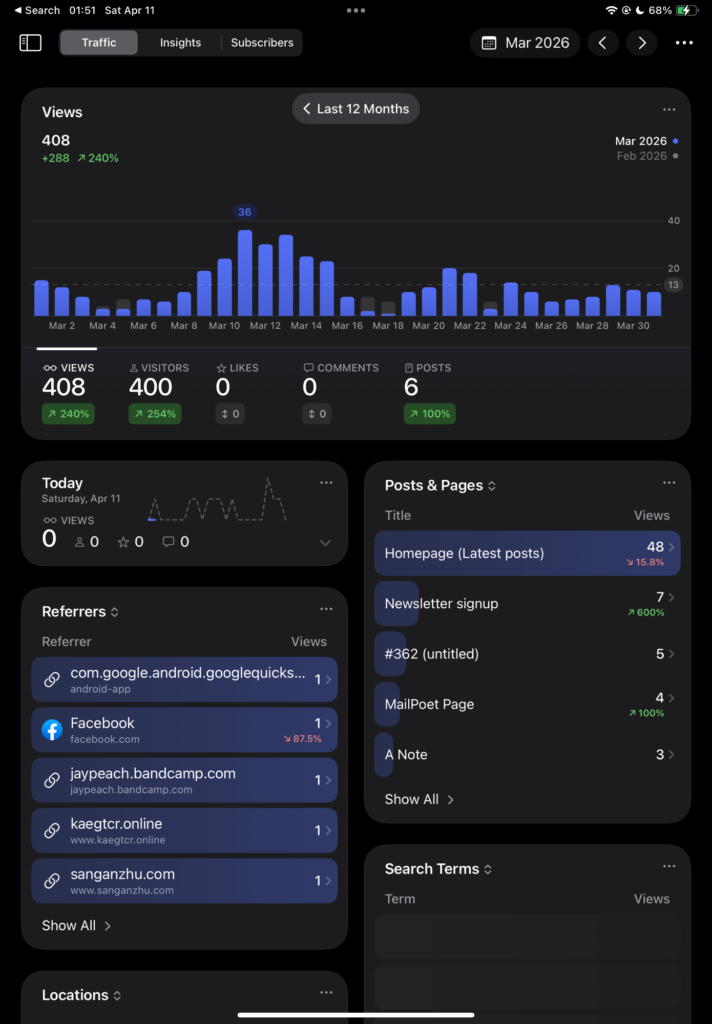 Well, Jetpack on iOS ipad shows different stats than iOS iphone. Here’s the iPhone stats for March: